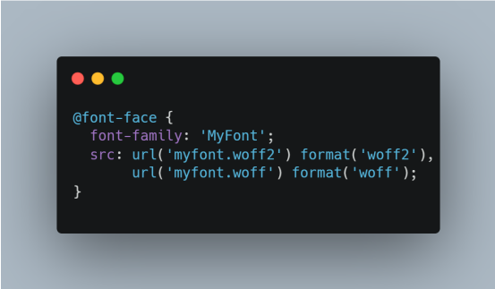 那么當瀏覽器解析到這個規則時,它會根據 src 屬性中指定的 URL 來下載相應的字體文件。在上面的例子中,瀏覽器會先嘗試下載 myfont.woff2 文件,如果下載失敗,則會嘗試下載 myfont.woff 文件。