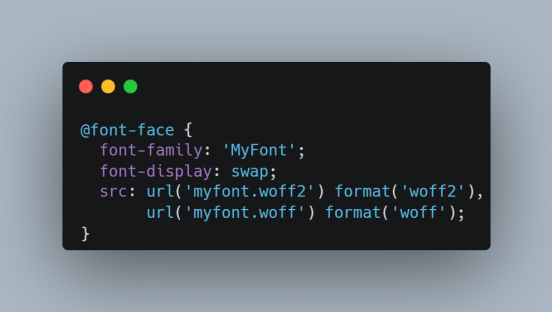 那么當瀏覽器解析到這個規則時,它會根據 font-display 屬性中指定的值來決定如何顯示文本。在上面的例子中,我們將 font-display 的值設置為了 swap,這意味著瀏覽器會立即使用后備字體來渲染文本,而不會等待自定義字體加載完成。當自定義字體加載完成后,瀏覽器會立即切換到自定義字體來渲染文本。
